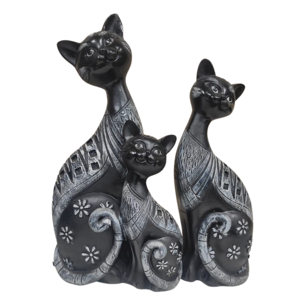Black & White Cat Family Statue Set (Set of 3) – Decorative Resin Figurines for Home, Living Room, or Mantelpiece Decor