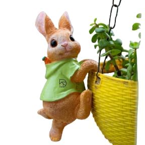Adorable Bunny Planter Hugger Statue – Climbing Rabbit Garden Decor Figurine – Resin Hanger for Pots, Baskets, Fairy Garden, or Home