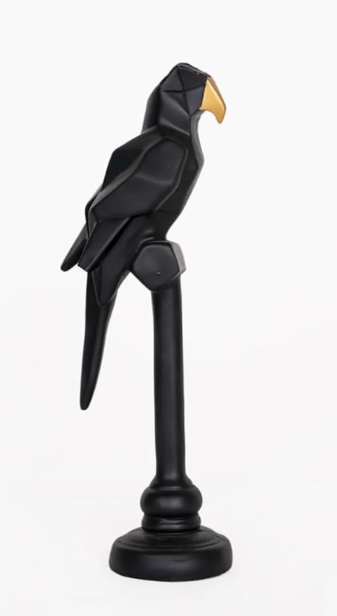Resin Figurine Parrot Showpiece for Home Office D?or Sculpture Decorative Items (Black)
