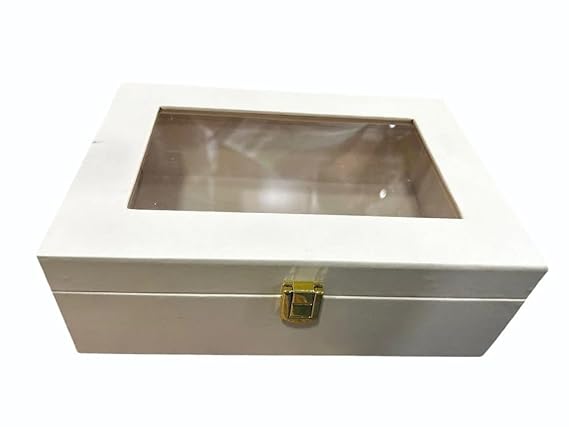 Luxury Storage Box with Glass Lid, Decorative Organiser Box for Jewellery and Accessories, Available in Red, Black, White (White)