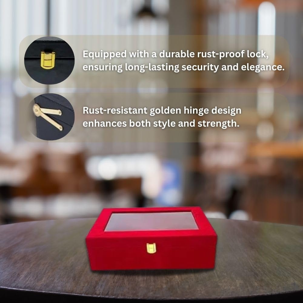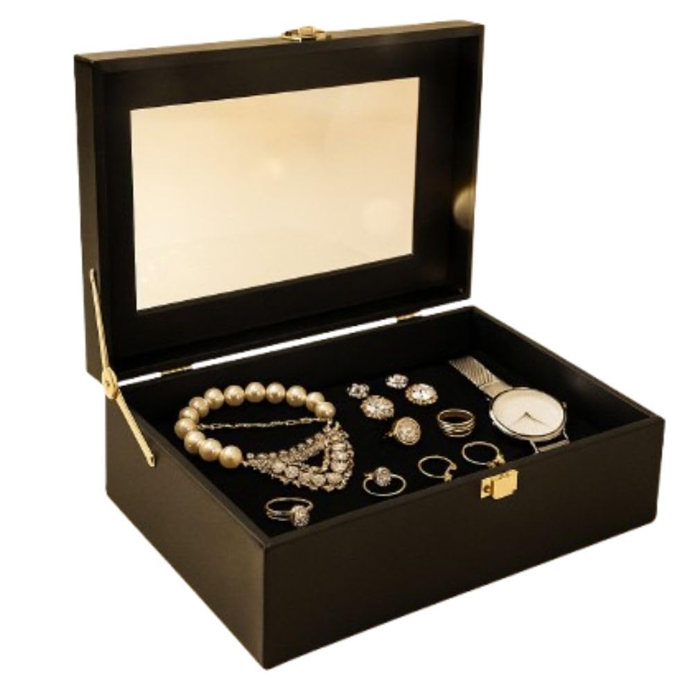Luxury Storage Box with Glass Lid, Decorative Organiser Box for Jewellery and Accessories, Available in Red, Black, White (Black)